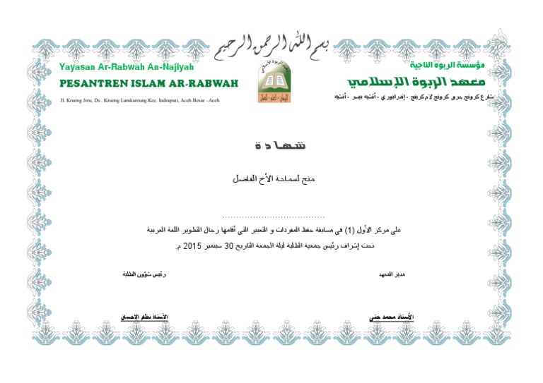Contoh Sertifikat Bahasa Arab Pdf